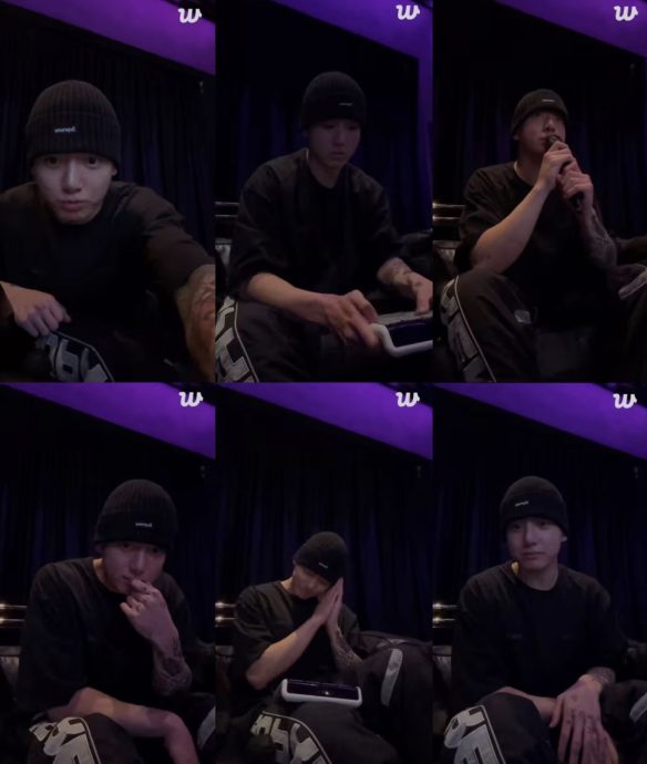 他在直播中接受粉丝点歌,演唱多首歌曲,有粉丝点到GD(G-Dragon)新歌时,让他谈及自己是GD铁粉。而他坦言看到其他歌手们表演,让他很想赶快重回舞台,但因服役无法这样做,曾为此感到焦虑,甚至自信下降,也因次更想念粉丝了。