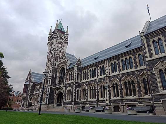 即然来到有“文学之都”美称的但尼丁,我们也去了纽西兰最古老的大学——奥塔哥大学。这座世界知名学府以医学专业闻名,全校建筑皆行维多利亚风,养成一种浪漫的书香与艺术气息,当中又以钟楼最惹人注目,远远望见就会被吸引着往前靠近,为这座美丽的大学赞叹。