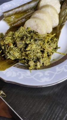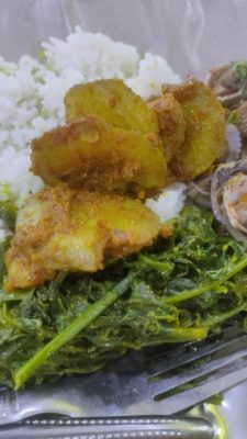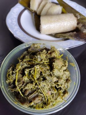 Nasi Kapau里有一道Rendang daka-daka,主角不是肉类也不是内脏,而是切成小丁的炸木薯,以仁当的技法烹煮,用平民食材创造不平凡的美味。但本地找不到这道菜,我们的友族同胞似乎没有吃Rendang daka-daka的习惯,但却有一道Rendang pucuk ubi(嫩木薯叶仁当),一直以来都是森州米南人的风味佳肴,别处吃不到。
