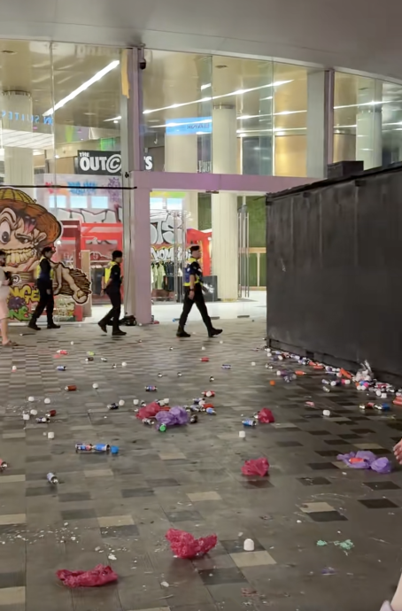 25日讯)活动结束后,吉隆坡市中心街头堆满、纸袋、盒子等垃圾,场面一片狼藉,引发网民热议及批评。