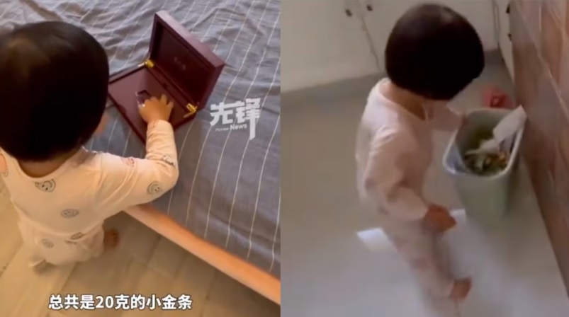 中国辽宁省一名妇女发现收在盒子内的20克小金条不见了,问了21个月大的女儿十多遍,答案都一致指向垃圾桶,妇女只能无奈死心接受事实。