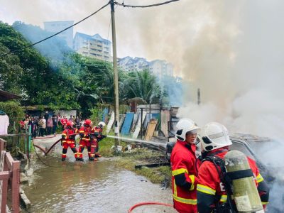 (吉隆坡26日讯)火烧木屋区,1间木屋及1辆旧款马赛地被大火吞噬!