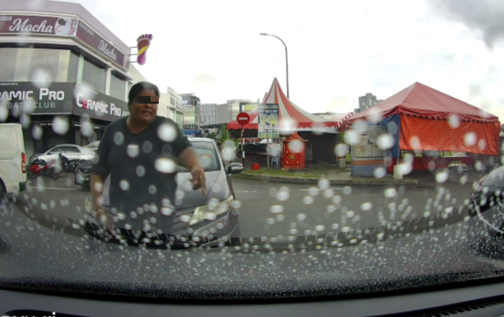 (加影27日讯)女司机因从纵向车道抢占停车位不果,恼羞成怒地敲打已成功停车的车辆车盖并大声辱骂,引发热议。