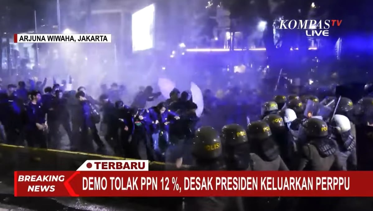 (雅加达28日综合电)印尼预计明年起,将增值税率从11%调高至12%,引发数百名大学生周五晚齐聚雅加达市区示威,反对政府上调增值税的计划。抗议行动持续至晚间,直至警方出动水炮车驱离后,示威人潮才逐渐散去。