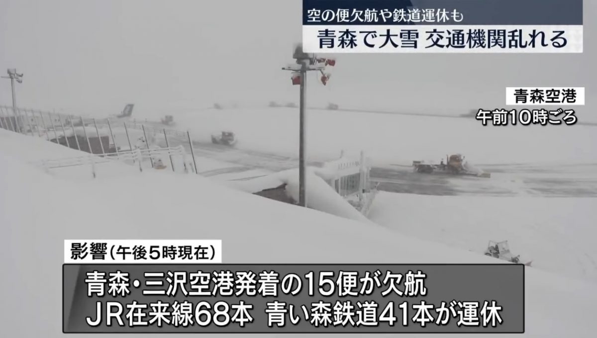 此次青森机场暴雪导致航班停飞、停电,对在青森县过年与旅游的民众造成影响,机场航下一度出现混乱。