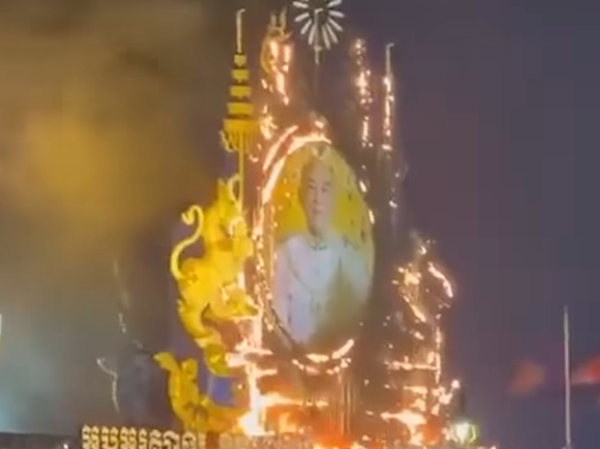 自由亚洲电台报导,现阶段尚不清楚起火原因,只知道刚跨完年现场就发生火灾。依据影片,当时火苗从巨大国王西哈莫尼像的后方窜出,接着从边缘开始延烧,期间不断有火苗掉下,随后现场灯光全暗,只剩下烈焰在黑夜中熊熊燃烧。