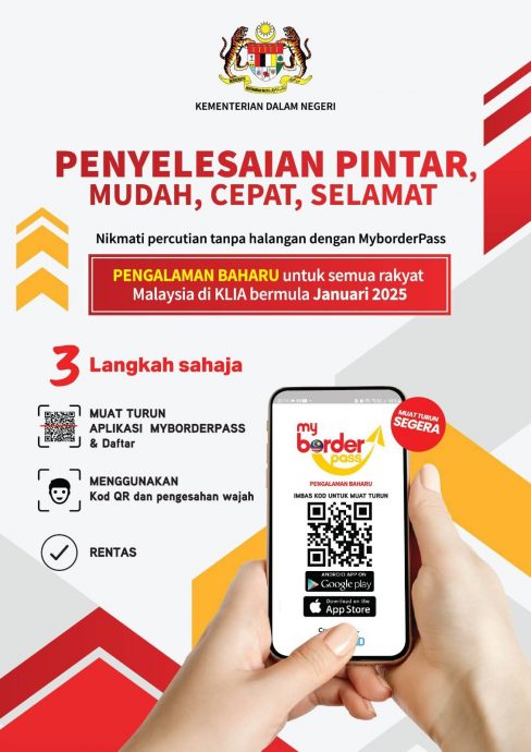 (吉隆坡4日讯)移民局促请民众尽快下载“MyBorderPass”应用程序,以提前熟悉操作,为即将到来的全新通关体验做好准备!