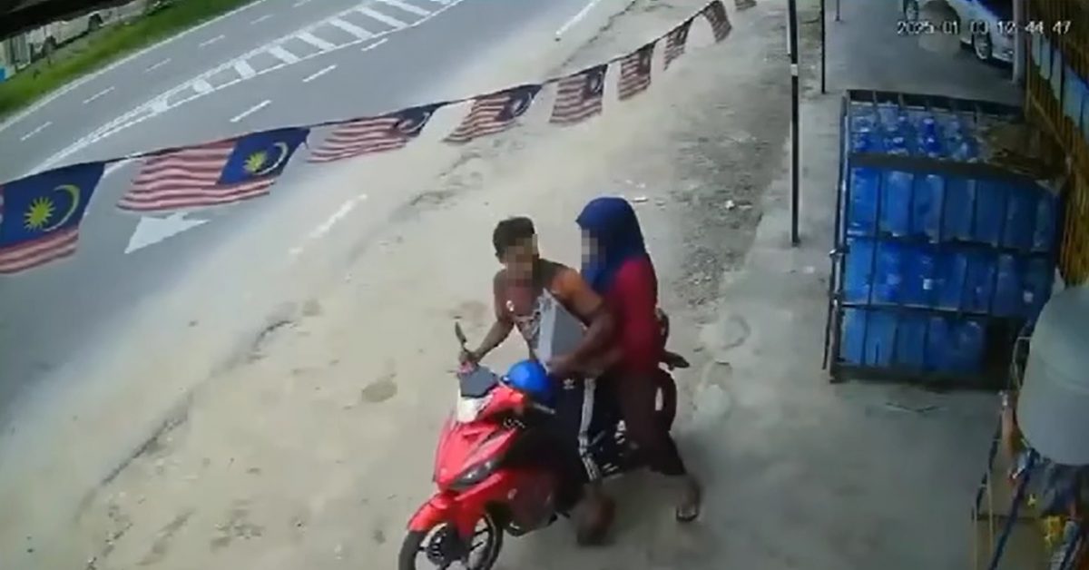 (八打灵再也4日讯)社媒疯传一对鸳鸯匪闯进杂货店抢走捐款箱,骑上摩托车逃走的视频,引起网民关注怒指这对男女早已是累犯!