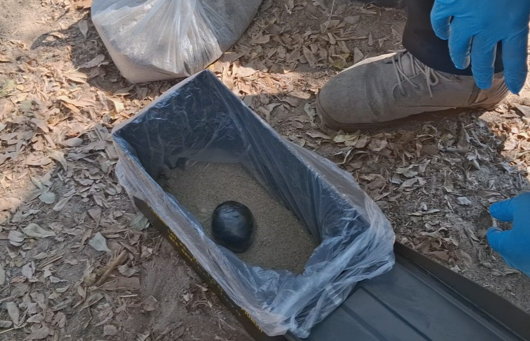 警方到场后发现,这枚土制炸弹体积与网球一般大小。拆弹小组谨慎地将炸弹取出,拿到远离居民区的地方处理。
