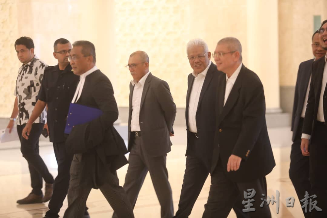 土团党署理主席拿督斯里韩沙再努丁、副主席拿督斯里罗纳建迪、最高理事拿督斯里赛富丁、伊党总秘书拿督斯里达基尤丁等国盟领袖一同抵达司法宫外。