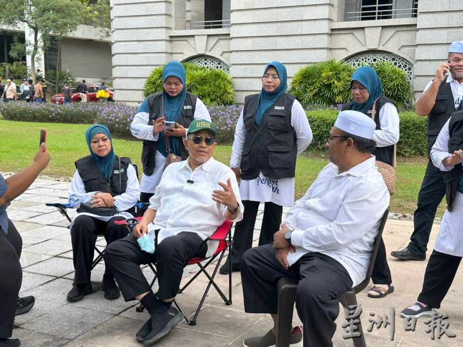 伊党总秘书拿督斯里达基尤丁抵达司法宫,并且带着一众国会议员和支持者进入司法宫范围。