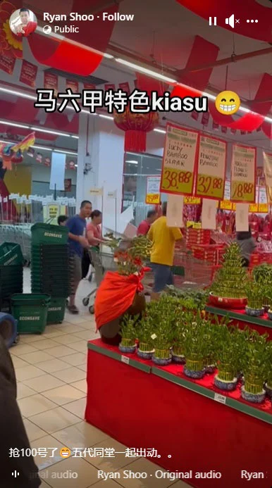 据悉,事发地点位于马六甲一间超市,当时该超市推出优惠活动,28罐汽水仅售23令吉88仙,包装饮品价格更低至12令吉88仙。这一优惠吸引了众多顾客,不少人为了年货特意提早前来“扫货”。