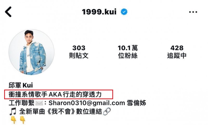 邱军的IG自我介绍原本写着“冲撞系情歌手AKA行走的穿透力”,爆出肇逃后网民直呼讽刺,结果昨晚简介已改掉,仅留下单曲《我不会》的数字连结,又再次掀起网民的怒火,遭骂“怎么还有时间改简介啊”、“冲撞系歌手这个标签你一辈子也别想撕掉了”、“刚红就逆转人生了”,但也有人认为应该是公司出手帮他改的,还有人疑惑,事件发生后他竟然没掉粉,依旧维持10.1万的粉丝数。