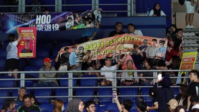大马球迷制大海报祝福许嘉雯退役愉快。(苏思旗摄)