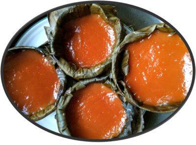 一个饭碗般大小的年糕,在大伙儿竞相舀取之下,不一会儿就吃光,但蕉叶的余香尙存,我从模具里取出以香蕉叶做的空容器,即使圆筒形已被挤捏得变形,湿漉漉黏搭搭却不丢失气质,自信登场,从容退场。不禁赞叹平时不起眼的香蕉叶,在蒸年糕中,竟然是大功臣——它把黏稠的粉浆紧密包围,在漫长高温的蒸笼里恪守岗位,熬过火攻后,纵然从鲜绿变成惨绿,还大方地把香气与年糕分享,不居功、不自傲,有君子成人之美的风度。