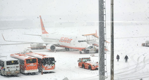 暴风雪袭济州岛“168航班被迫取消” 近万旅客滞留