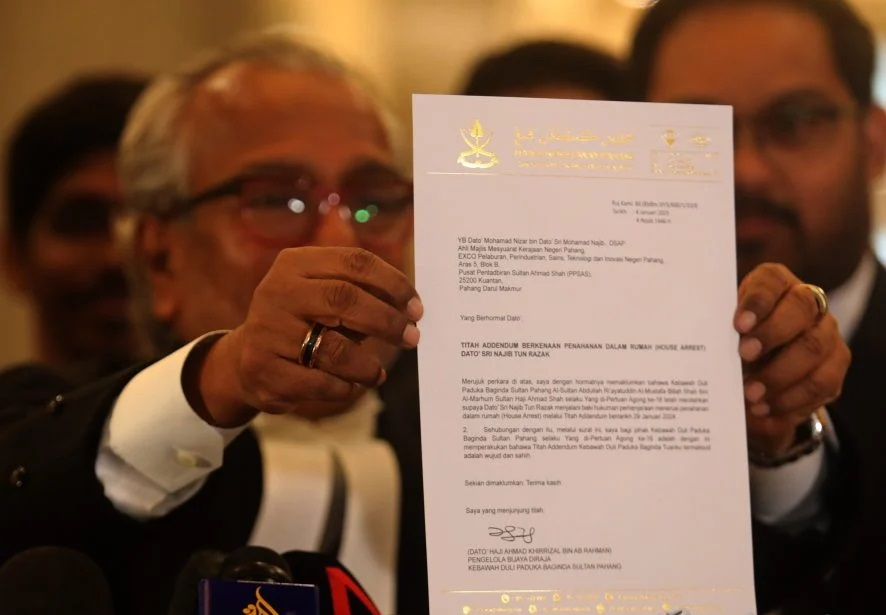 尽管如此,我相信彭亨王宫的信函,前国家元首确实发出纳吉居家服刑的特赦令附录。