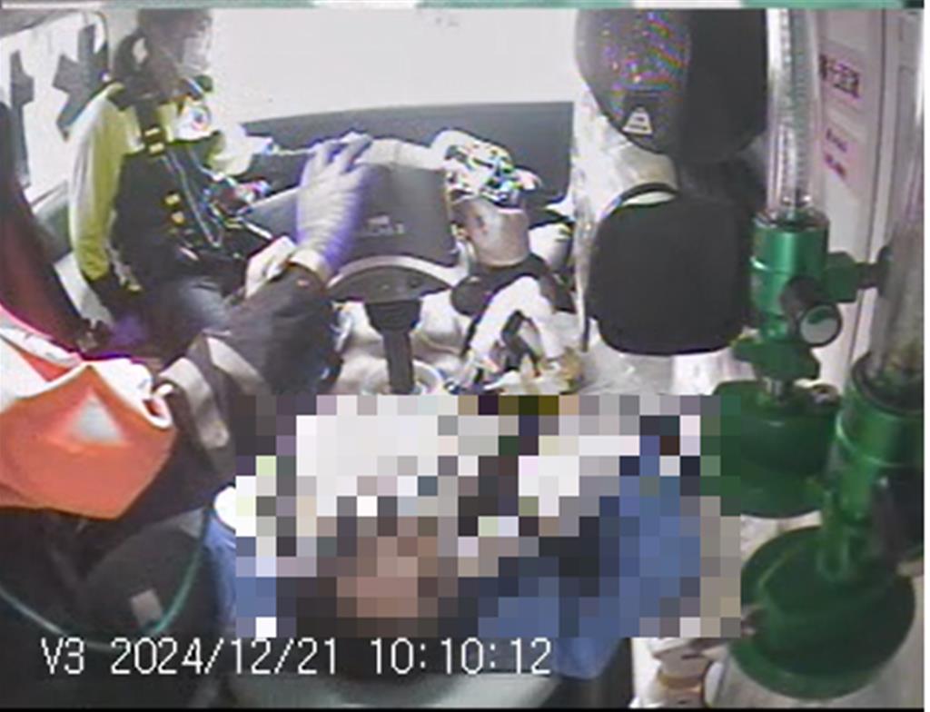 新竹县政府消防局表示,男子于去年12月21日上午10时叫了一声就呼吸全无,护理师研判是OHCA(到院前心肺功能停止),就立刻指导儿子施作CPR,虽然家人回复患者似乎有呼吸,但因为呼吸次数时10秒仅1次(正常为2至3次),而且是张口式的呼吸,推测为无效的“濒死式呼吸”,便要求家属持续CPR。