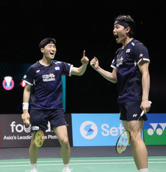 (吉隆坡12日综合电)韩国强档金元昊与徐承宰阔别5年再度搭档参赛,首战便勇夺大马羽球超级1000赛男双冠军!