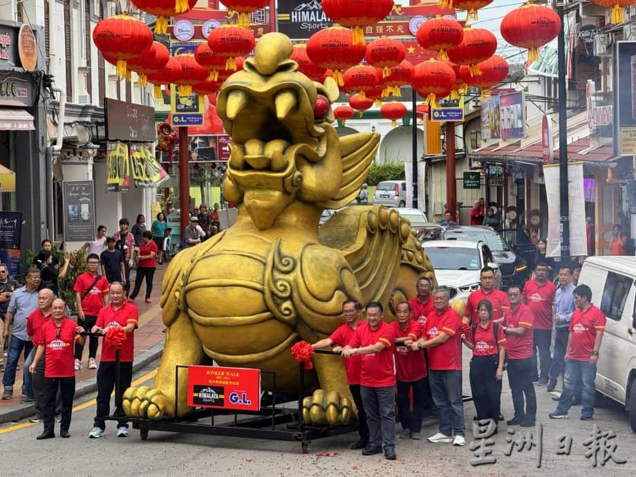 (马六甲16日讯)马六甲鸡场街文化坊乙巳蛇年吉祥物“发财貔貅”今日热闹升空,威武坐镇鸡场街路口,并荣获《东盟纪录》颁发东盟国家最大户外貔貅塑像(以高密度聚苯乙烯制成)的认证荣誉!