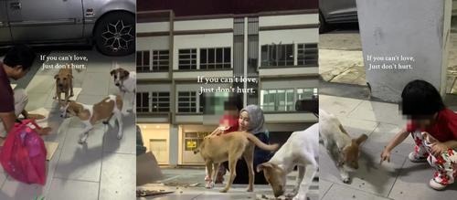(吉隆坡16日讯)一对父母常带着女儿一起喂食流浪狗,身体力行教导孩子关爱小动物,引起网民赞叹“善良教育从家庭做起!”