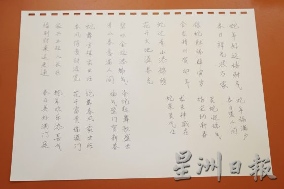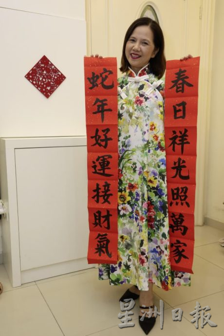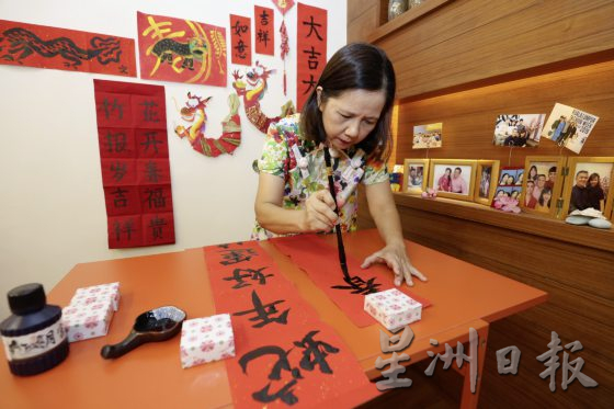 走进洪曙南位于马六甲的家,目及之处皆是出自于她或孩子们的手笔,字迹、形状尺寸各异的春联,甚为喜庆。