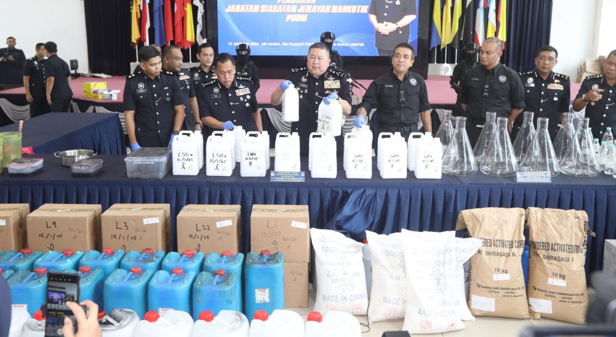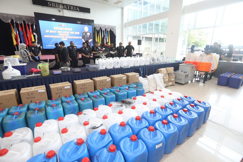 (吉隆坡17日讯) 贩毒集团租下工业区店屋单位做为炼制可卡因据点,更远从香港聘雇炼毒师来马炼毒,惟营运逾一个月便被警方捣破炼毒实验室及仓库,起获总价值达800万令吉的毒品与原料。