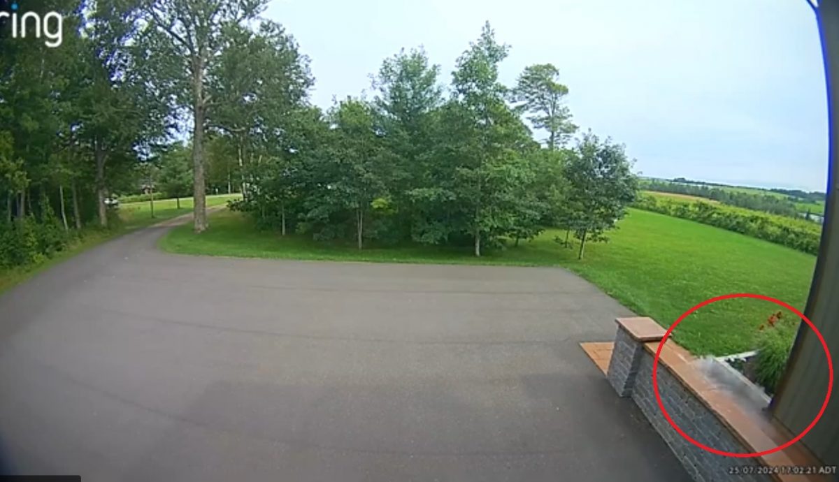 综合卫报等报导,这起事件于去年发生在爱德华王子岛,一对夫妻外出散步遛狗回家后,发现家门前的走道上遍地石块碎片与尘土,查看装在门前的监视器画面后,才惊悉有石头从天而降撞击他家门前,还发出一阵巨响。
