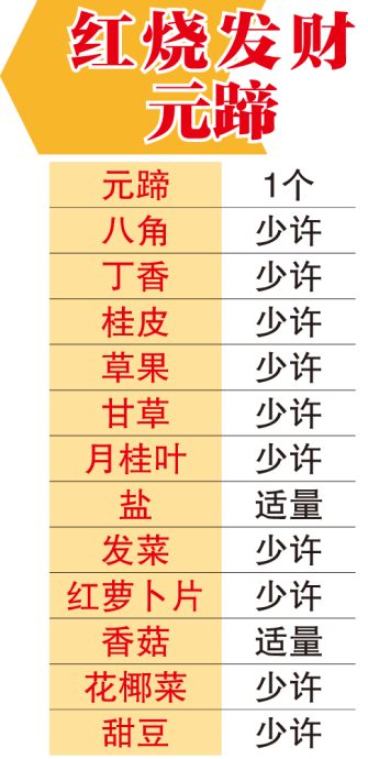 他说,焖煮元蹄工作可以提前完成,待要食用时再取出烹煮汤汁及勾芡,再配上适量的配菜提鲜即可。