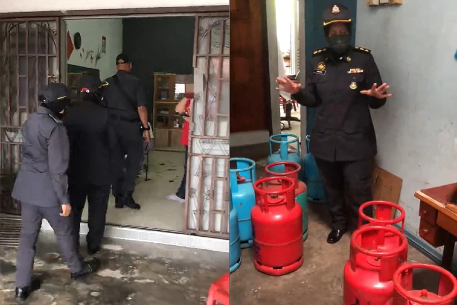 在接获民众举报后,执法人员突击检查了一名妇女的住家,揭发了她涉嫌私自售卖液化天然气的违法行为。