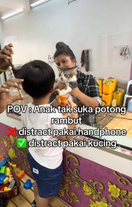 (吉隆坡19日讯)一家理发店利用宠物猫咪来分散小孩子的注意力,让小孩子不害怕理发,使得整个过程更顺畅,做法引起众人赞叹。