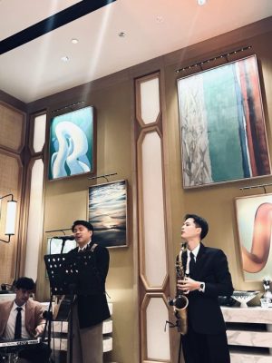 今晚酒吧有乐队驻唱,3个大男生组成的乐团有个可爱的法文名字——Bonjour,法文寓意你好。1970的Bonjour,一杯酒一首歌,向消逝的1970美好年代问好,向传奇酒店曾写下的伟大历程和辉煌篇章致敬。