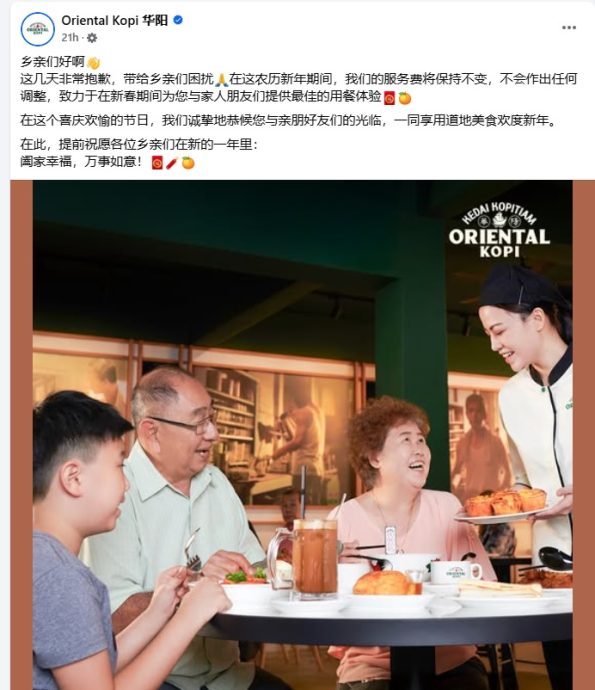(吉隆坡23日讯)针对农历新年期间服务费从10%调涨至15%的风波,华阳餐饮(KOPI,0338,创业板消费产品服务组)表示,这只是内部评估,服务费不会提高。