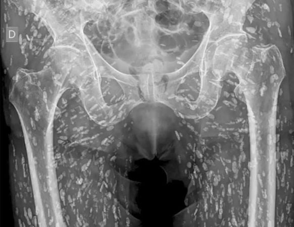 《每日星报》报导,医疗专家卡利近日在X平台上传了这张X光片,声称这是他见过“最疯狂的X光片”,患者的骨盆周围散布著密密麻麻“已钙化的猪肉绦虫卵”。