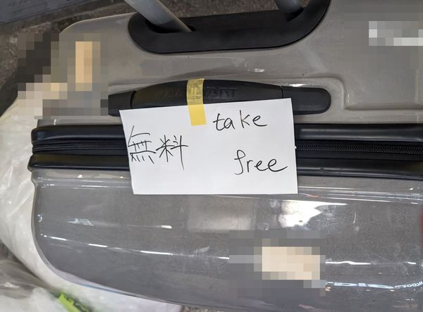 原PO生气说,照片拍摄的地点位在大阪心斋桥附近一间商店门口,麻烦大家出国时请当一个有水准的观光客好吗,儘管纸条上面写着“免费赠送”,但若是一直没有人把行李箱拿走,不就是变相造成店家的麻烦,而且个资还没有全部撕掉。