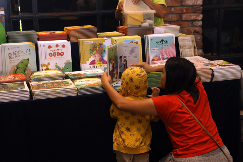 尽管马来西亚的出版市场相对较小,依然有一批默默耕耘童书创作的作家和编辑,在兢兢业业地为本地的孩子制作童书。置身书展,穿梭于本地出版单位的展区之间,你会赞叹我们国家文化的多元。语言方面,有华文、英文、马来文;题材方面,有神话传说、民间故事、当代生活;媒材方面,有水彩、剪贴、拓印等等。浓浓的南洋风,给人强烈的亲切感。
