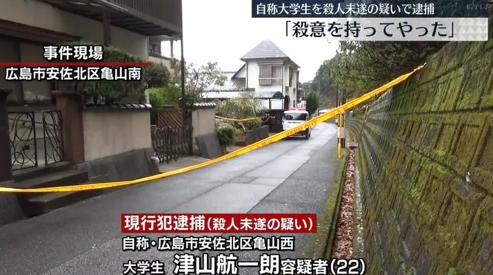 日媒报道,广岛市安佐北区一所住宅今天凌晨3时30分发生攻击事件,22岁男子津山航一朗趁着夜色侵入女友人住家,以铁锤多次殴打她的头部,当时与女友人同住的50多岁父母闻声起来查看也受波及,母亲伤势严重,父亲则受轻伤。根据警方所言,3人送医后意识清醒,没有生命危险。