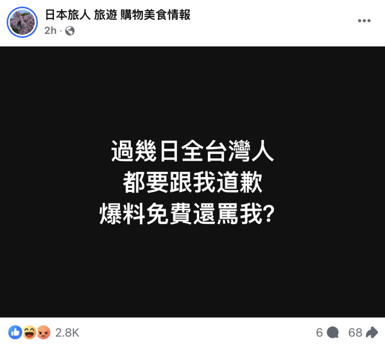 然而,3日大S死讯被证实后,粉专小编非但未解释,反而发文称:“过几天全台湾人都要跟我道歉,爆料免费还骂我?”该贴文甚至限制留言,让不少人更加愤怒。