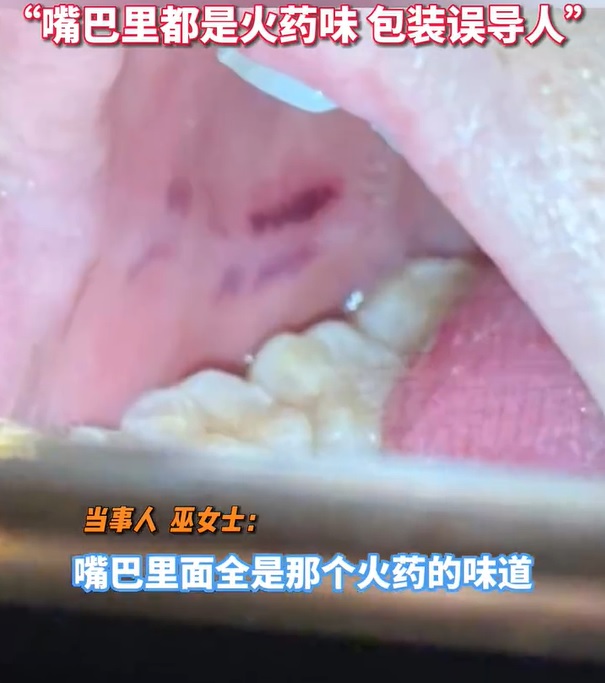 女子将鞭炮误认成牛奶糖,咬下去以后鞭炮在口中爆炸。(图/翻摄微博)