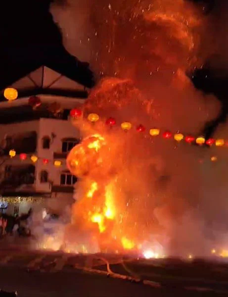大年初九“拜天公”是福建人的重要传统节庆,彭亨直凉新村居民依照习俗,于今晨多次燃放鞭炮庆祝。