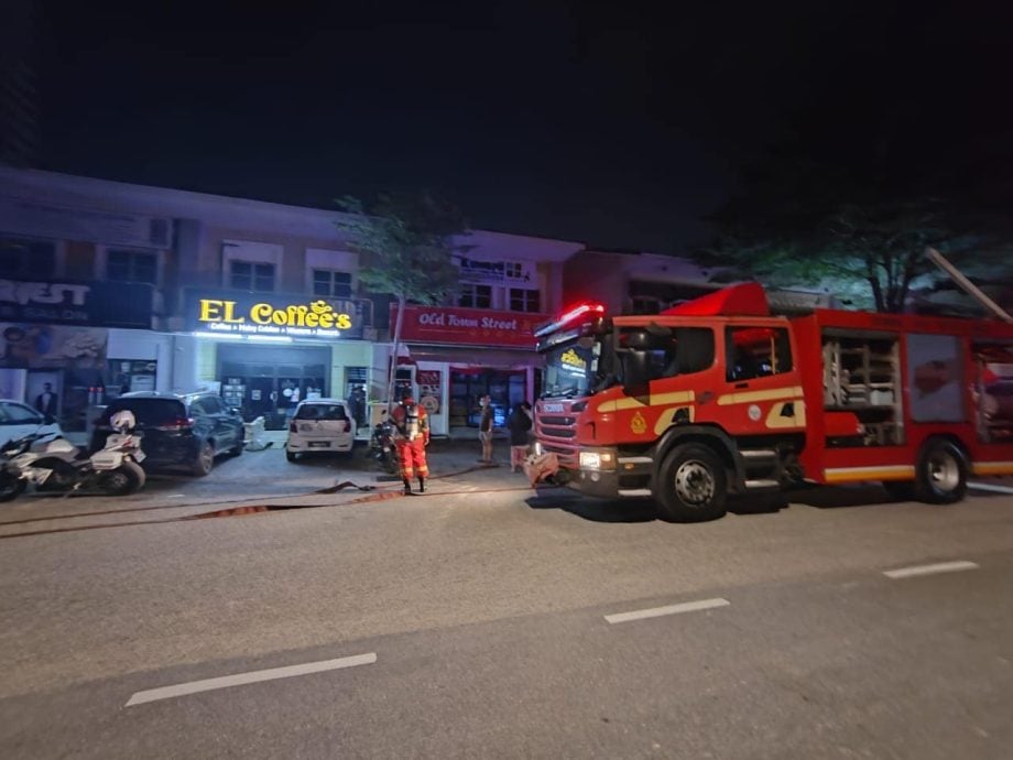 (槟城7日讯)双层店铺凌晨失火,幸好消拯员及时赶抵,救出受困的女子和3只猫。