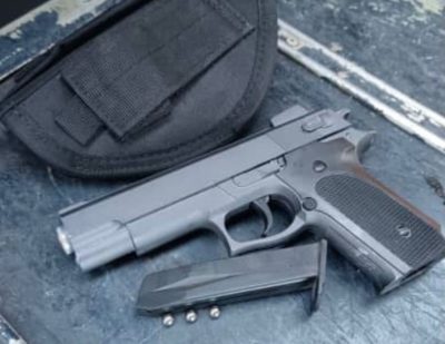 (八打灵再也12日讯)雪邦警方前日在路障检查中,逮捕1名25岁摩托车骑士,起获1把仿真枪及4颗铁珠弹。