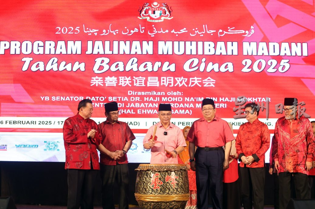 大马伊斯兰发展局每年配合各族节庆举办的农历新年庆典,今年首次在华人社团场地举办。纳因莫达赴会亲自主持开幕仪式,强调活动志在促进亲善与国民团结。