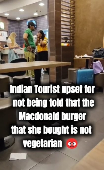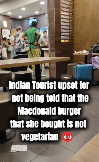 @young.lost6 An Indian tourist threw her burger box on the floor and confronted a MacDonald staff over not being told that the burger she bought is not vegetarian. Your thoughts on this incident? #travel #india #tourist #macdonalds #thoughts ♬ original sound – Young & Lost