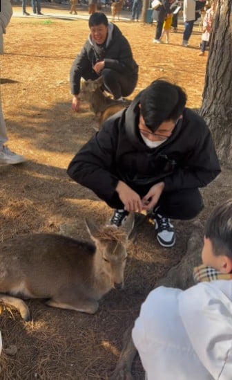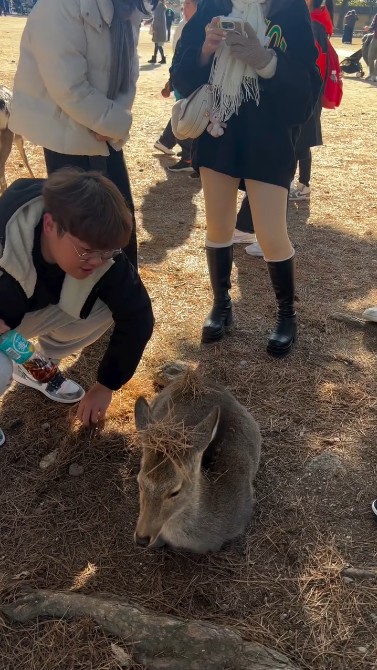 综合《星岛日报》和《镜周刊》报道,Instagram帐号“nara_deer1”经常分享奈良公园的鹿群日常,近日分享了2段影片,显示2名疑似台湾游客的男子蹲在奈良鹿身旁,捡起地上的枯草,放在正在休息的奈良鹿头上,头顶放满了还继续往身上堆叠。