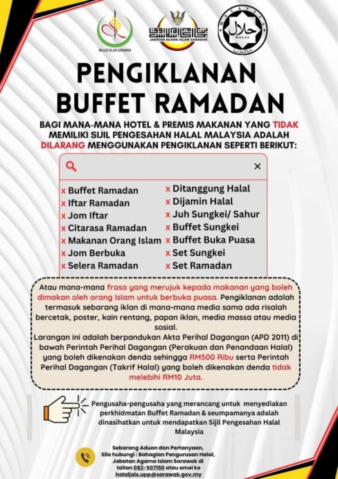 若有任何疑问,公众可以联系砂拉越伊斯兰宗教局清真管理部(082-507510),或发送电邮至 [email protected]。