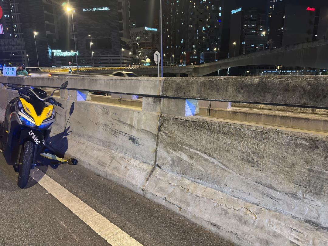 八打灵再也警区主任沙鲁尼占助理总监指出,警方于昨日傍晚6时50分接获上述投报,调查显示事发时死者(30岁)独自骑摩托车途经上述地点时,因失控撞上前方轿车,导致整个人从摩托车被抛飞至高架桥坠落,当场重伤身亡。