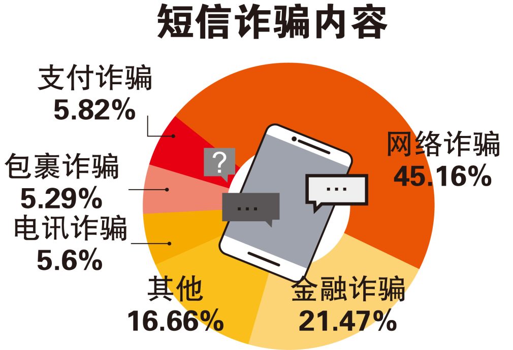 ● 短信诈骗:赌博相关诈骗占短信诈骗的45.16%;金融诈骗(21.47%),包括虚假投资机会和诈骗贷款服务;其他常见诈骗短信包括:包裹诈骗(5.29%)、电信诈骗(5.60%)、虚假付款提醒(5.82%)。