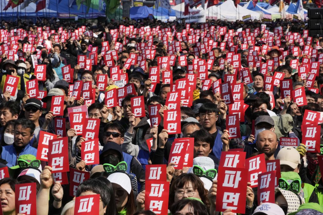 随着尹锡悦弹劾案宣判进入倒计时,赞成和反对弹劾尹锡悦的民众周四集结在宪法裁判所(宪法法院)附近举行集会。警方当天发布二级紧急工作响应“乙号非常令”,全力维护社会秩序。