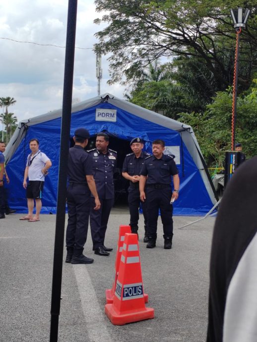 雪州总警长拿督胡申(中)抵达巡视现场。